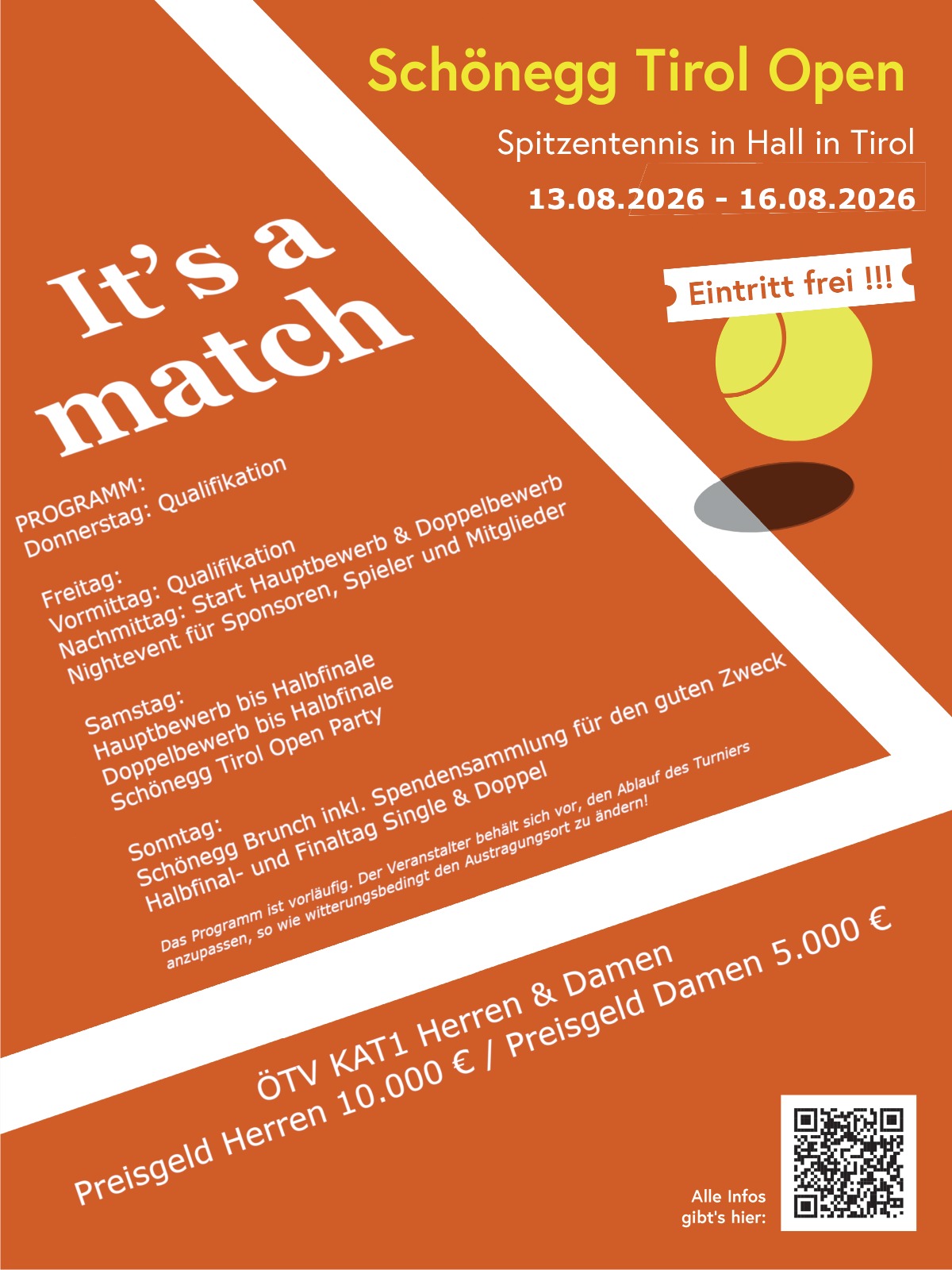 Wir als TC Hall/Schönegg organisieren dieses Turnier zum vierten Mal, mit einem Preisgeld von € 10.000,- Herren und zum ersten Mal auch mit DAMEN - € 5.000,-